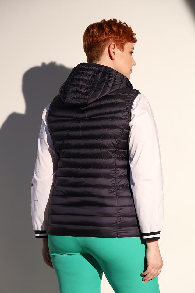 Модель имеет удобный капюшон, который защитит от ветра и небольшого дождя. Застежка-молния позволяет быстро и легко надевать и снимать жилет. Боковые карманы на молнии обеспечивают безопасное хранение необходимых мелочей.