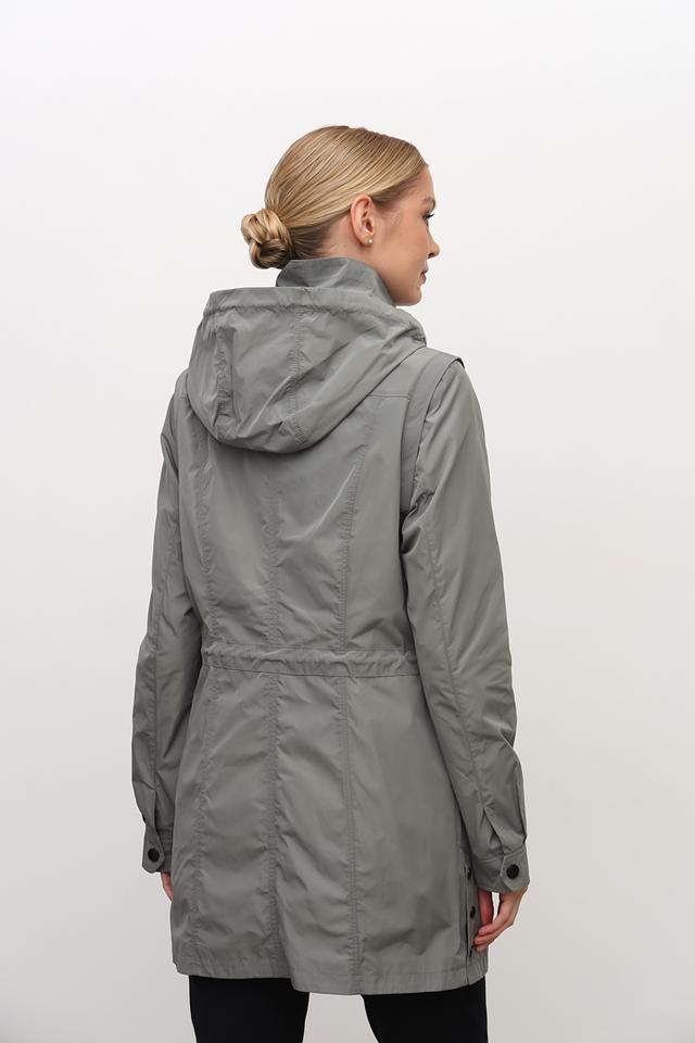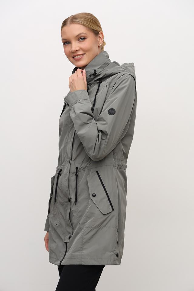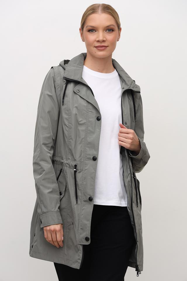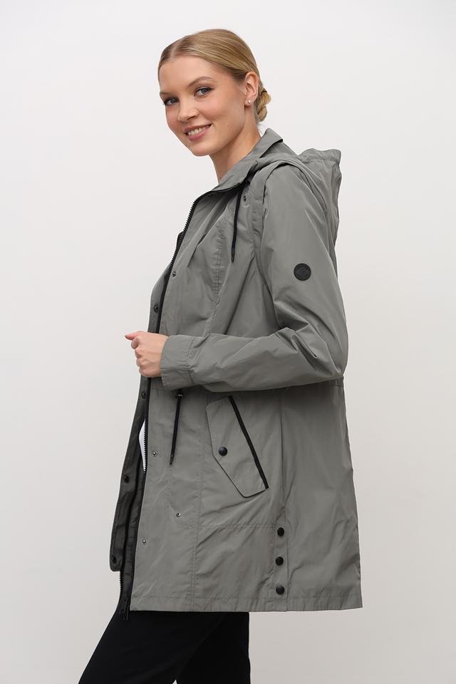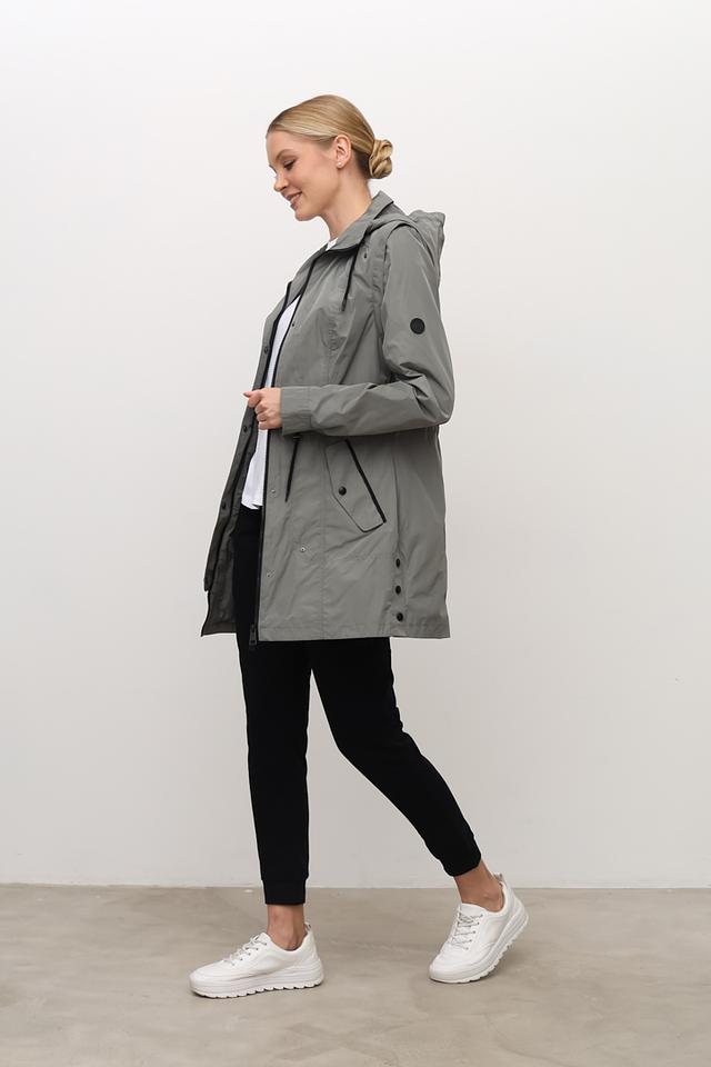 Плащ имеет удобный капюшон, который защитит вас от ветра и дождя. Застежка-молния и кнопки обеспечивают надежную фиксацию. Функциональные карманы позволяют удобно хранить необходимые мелочи.
