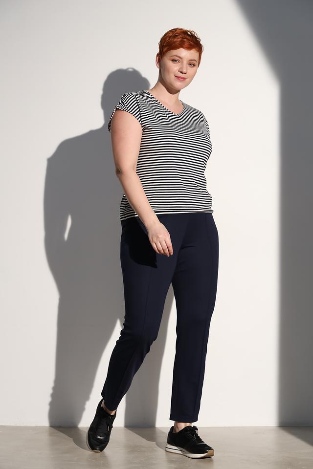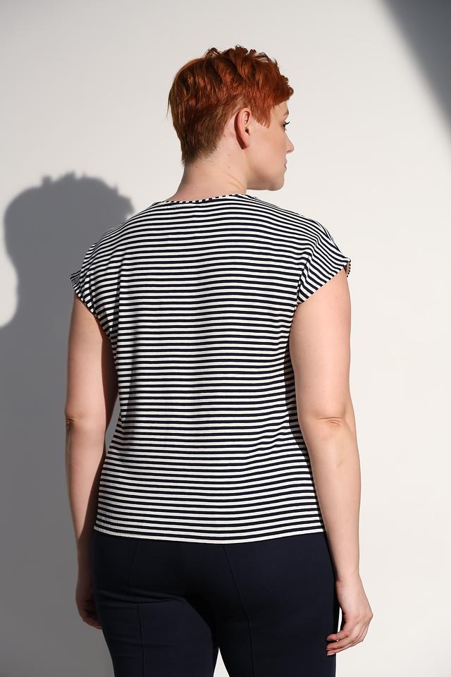Женская футболка Lebek чёрно-белого цвета с короткими рукавами и округлым вырезом. Изготовлена из мягкой вискозы с добавлением эластана для комфорта и хорошей посадки. Состав: вискоза 92%, эластан 8%