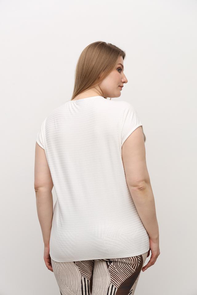 Текстура ткани слегка ребристая, что придает футболке дополнительный объем и интересную фактуру. Состав: 95% вискоза, 5% эластан. Эта футболка идеально сочетается с джинсами, брюками или юбками, позволяя создавать разнообразные и стильные образы.