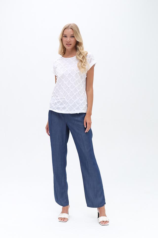 Классический прямой крой обеспечивает свободу движений и подходит для любого типа фигуры. Эластичный пояс с завязками позволяет регулировать посадку по фигуре, обеспечивая максимальный комфорт.