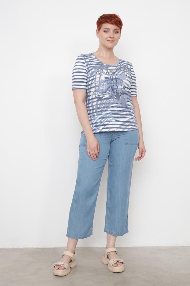 Состав ткани: 95% вискоза, 5% эластан. Эта футболка идеально сочетается с джинсами, шортами или юбками, создавая непринужденный и стильный образ. Она подойдет для повседневной носки, прогулок по городу или отдыха на море.