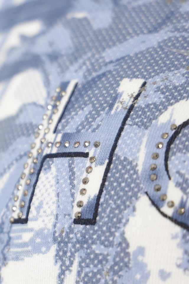 Эта стильная футболка от Lebek станет незаменимой вещью в вашем летнем гардеробе. Футболка выполнена в голубой цветовой гамме и украшена ярким принтом с надписями "HOLIDAYS", "SUN", "SAND", "SEA" и изображением пальм.