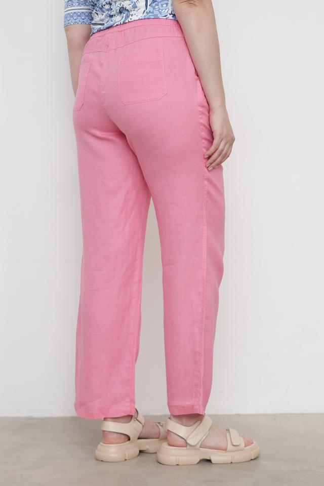 Розовые брюки от Lebek из 100% льна — это комфорт и стиль в одном изделии. Прямой крой и эластичный пояс обеспечивают удобную посадку, а натуральный лен делает брюки идеальным выбором для тёплой погоды. Состав: лен 100%