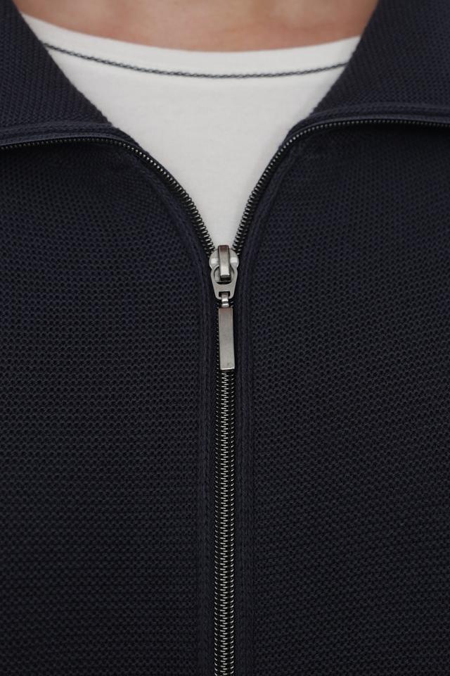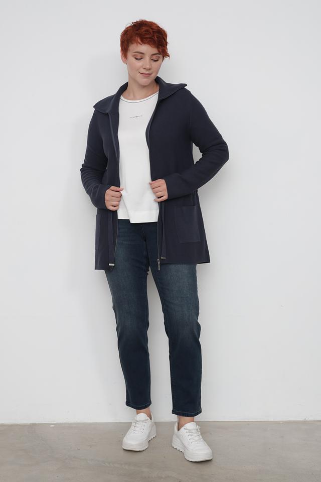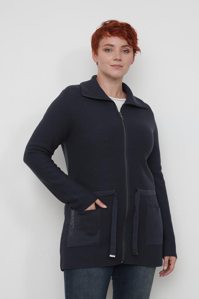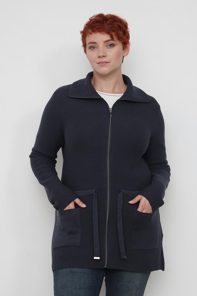 Тёмно-синий жакет от Lebek – это стильная и удобная модель на молнии с накладными карманами. Жакет выполнен из фактурного трикотажа, что придает ему особый шарм и комфорт в носке. Состав: хлопок 50%, полиакрил 50%
