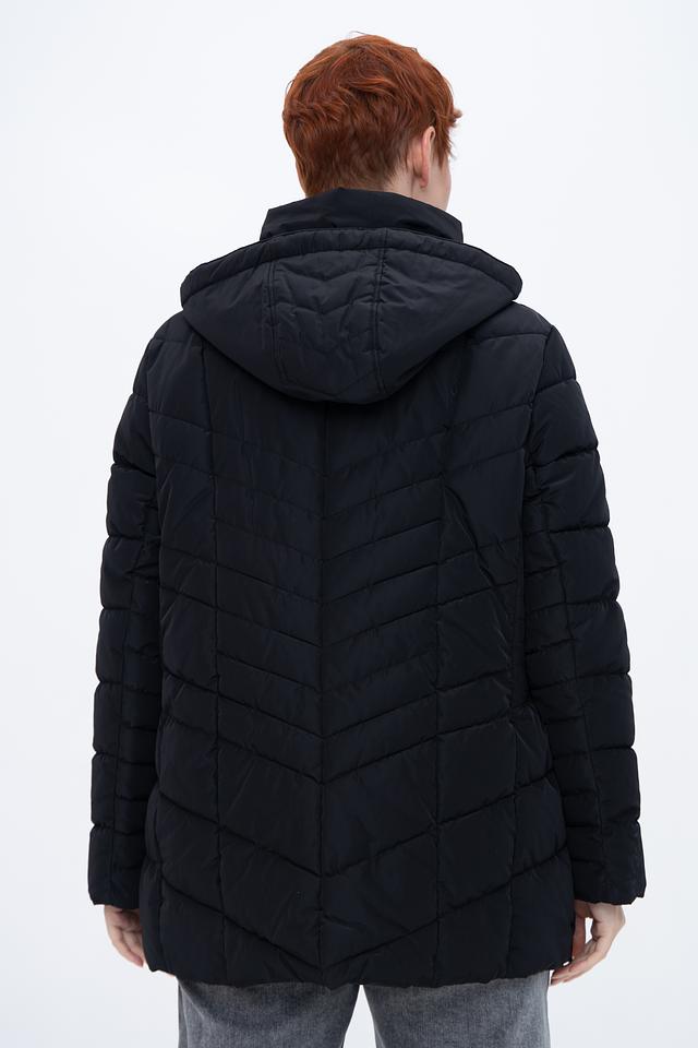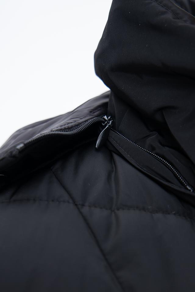 Куртка имеет стеганую фактуру, которая придает ей современный вид. Застежка на молнию и кнопки обеспечивает надежную защиту от ветра и холода. Капюшон добавляет функциональности и позволяет защититься от осадков.