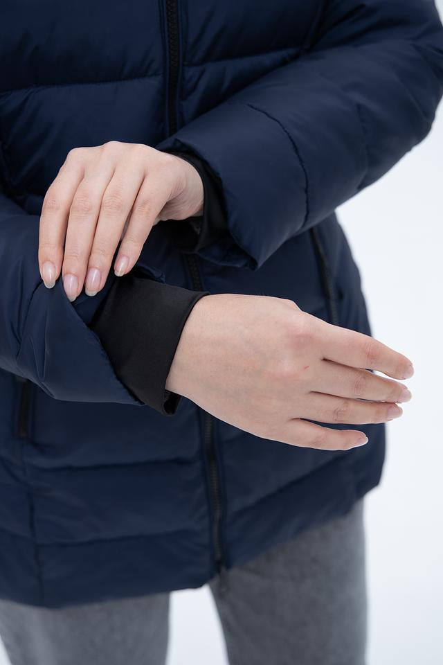 Куртка имеет удлиненный силуэт, который обеспечивает дополнительное тепло и комфорт в холодную погоду. Капюшон защитит от ветра и осадков. Застежка – молния. Куртка дополнена боковыми карманами.