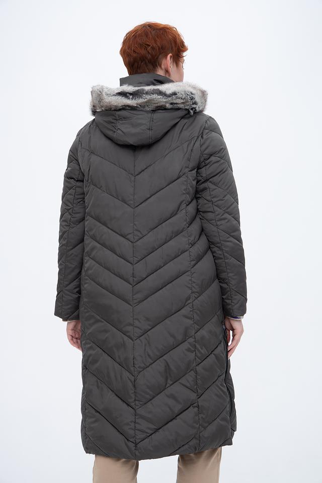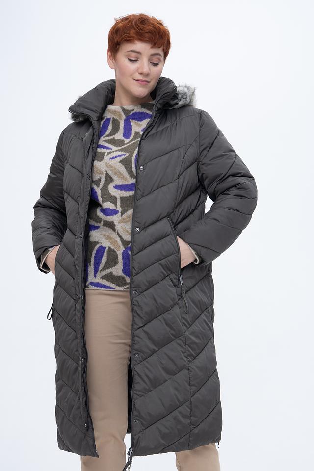 Стильное пальто Lebek серого цвета – это идеальный выбор для холодной погоды. Удлиненный силуэт и стеганая фактура обеспечивают тепло и комфорт, а капюшон с отделкой из искусственного меха добавляет образу изысканности. Состав: полиамид 55%, полиэстер 45%