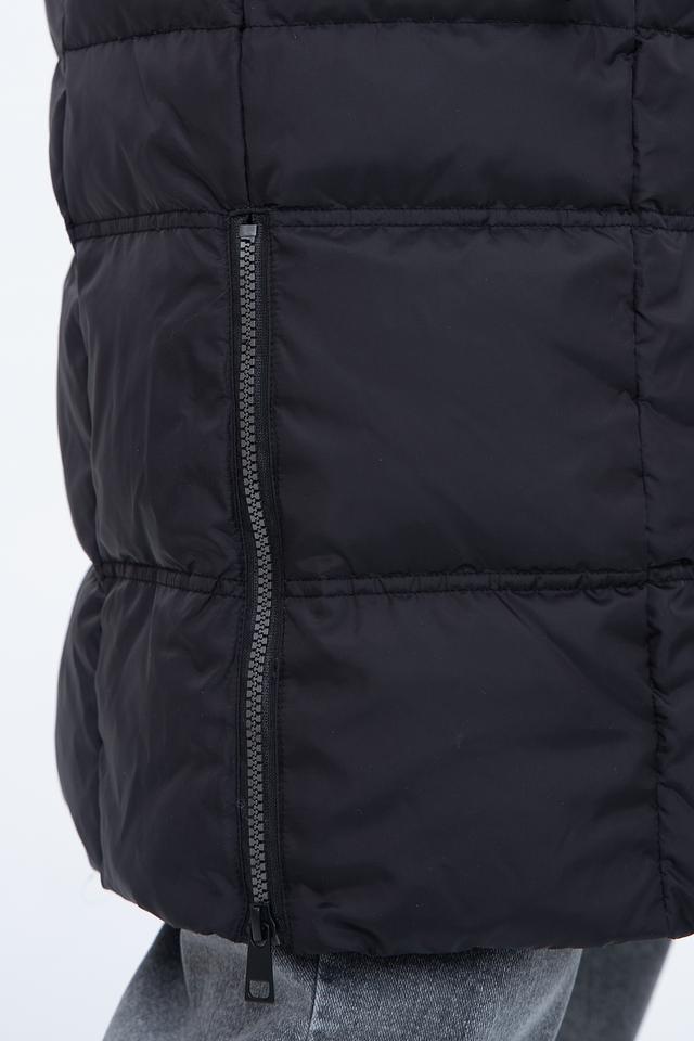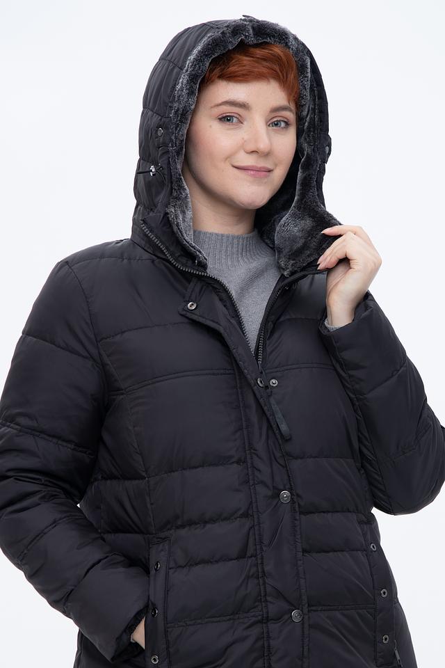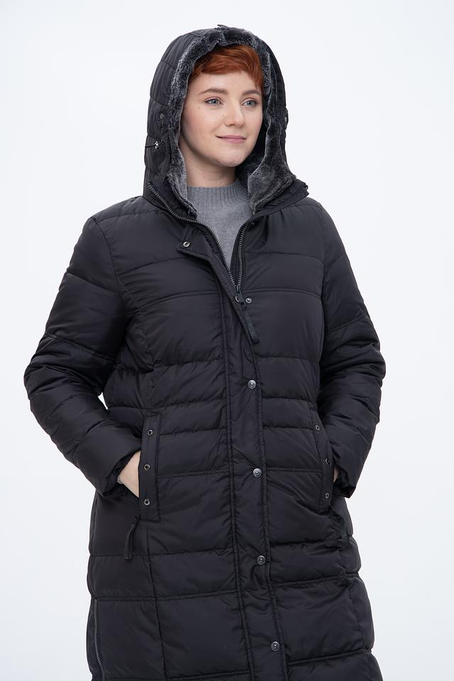 Пальто имеет стеганую фактуру, которая придает ему современный вид и обеспечивает дополнительную теплоизоляцию. Капюшон отделан мягким искусственным мехом, который защитит от ветра и снега. Застежка – молния, что обеспечивает удобство и быстроту одевания.