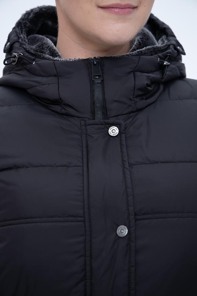 Чёрное стеганое пальто Lebek – это практичная и стильная верхняя одежда для прохладной погоды. Модель выполнена из полиамида и полиэстера, имеет капюшон с отделкой искусственным мехом и застегивается на молнию. Состав: полиамид 55%, полиэстер 45%