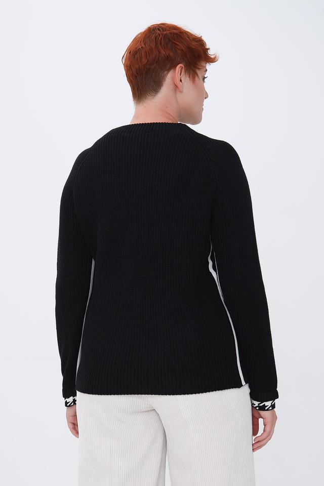 Чёрный пуловер от Lebek с контрастными полосками на рукавах и по бокам. Изготовлен из мягкого трикотажа, сочетающего хлопок и полиакрил, обеспечивая комфорт и удобство в носке. Состав: хлопок 50%, полиакрил 50%