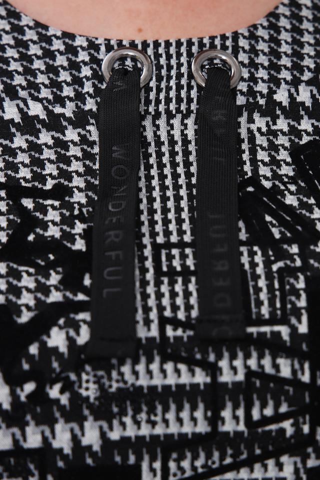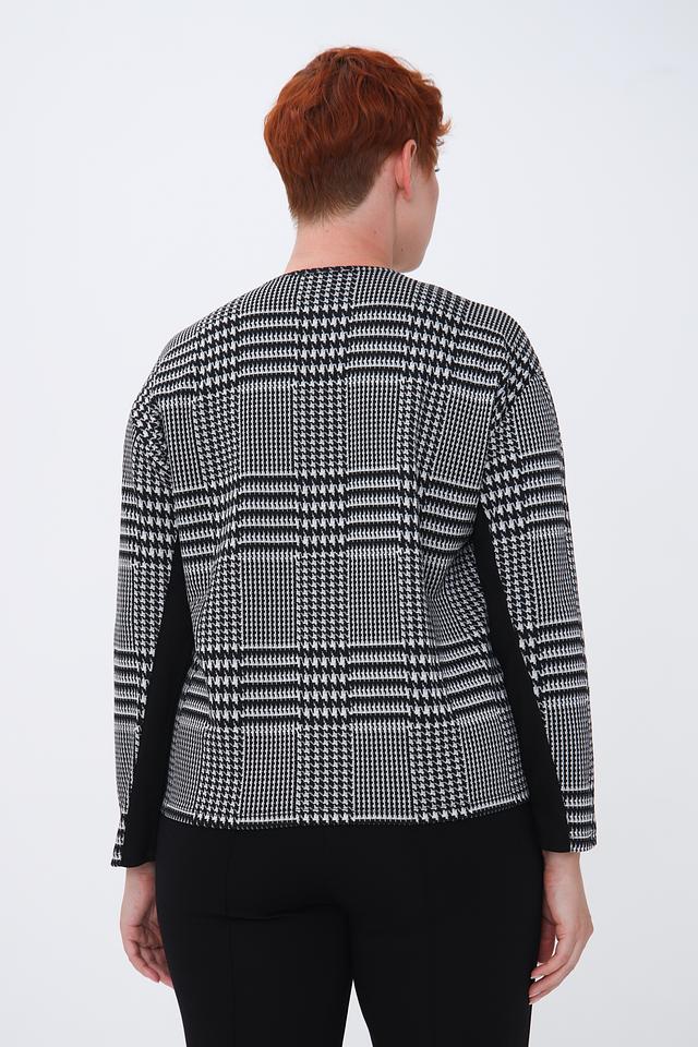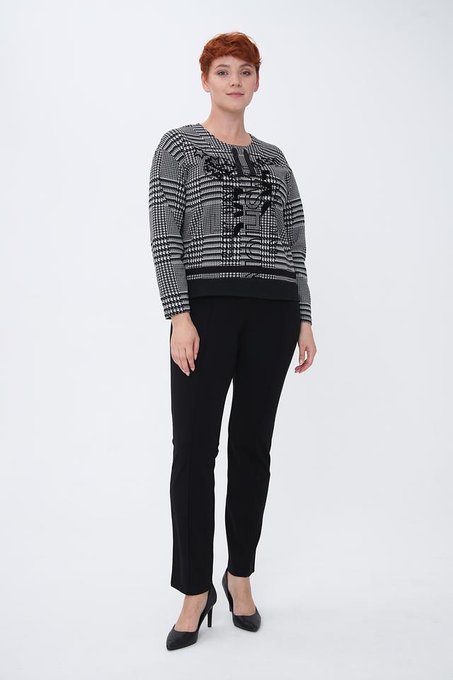 Женский пуловер Lebek чёрно-белого цвета в классическую клетку – стильное и комфортное решение для повседневного гардероба. Модель выполнена из мягкого трикотажа с добавлением вискозы и эластана, что обеспечивает приятные тактильные ощущения и хорошую посадку по фигуре. Состав: полиэстер 77%, вискоза 21%, эластан 2%