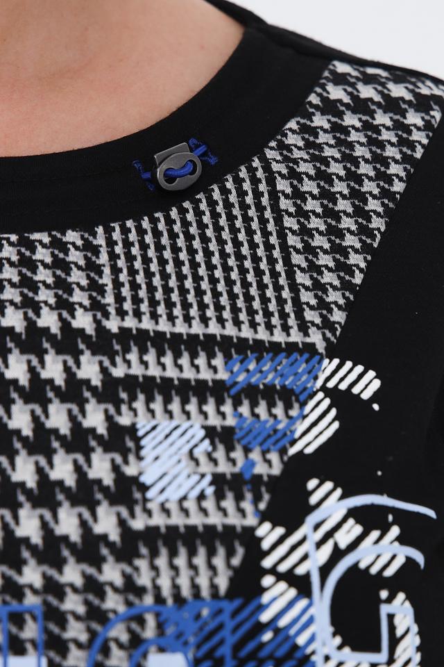 Этот стильный пуловер от Lebek станет отличным выбором для создания модных образов. Пуловер выполнен в чёрном цвете и украшен ярким принтом, сочетающим в себе классическую клетку и современные геометрические фигуры.