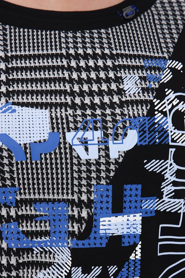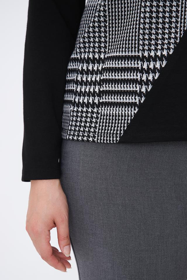 Чёрный пуловер от Lebek с оригинальным принтом в клетку и геометрическими элементами. Модель с длинными рукавами и круглым вырезом горловины станет стильным дополнением к вашему гардеробу. Состав: полиэстер 77%, вискоза 21%, эластан 2%
