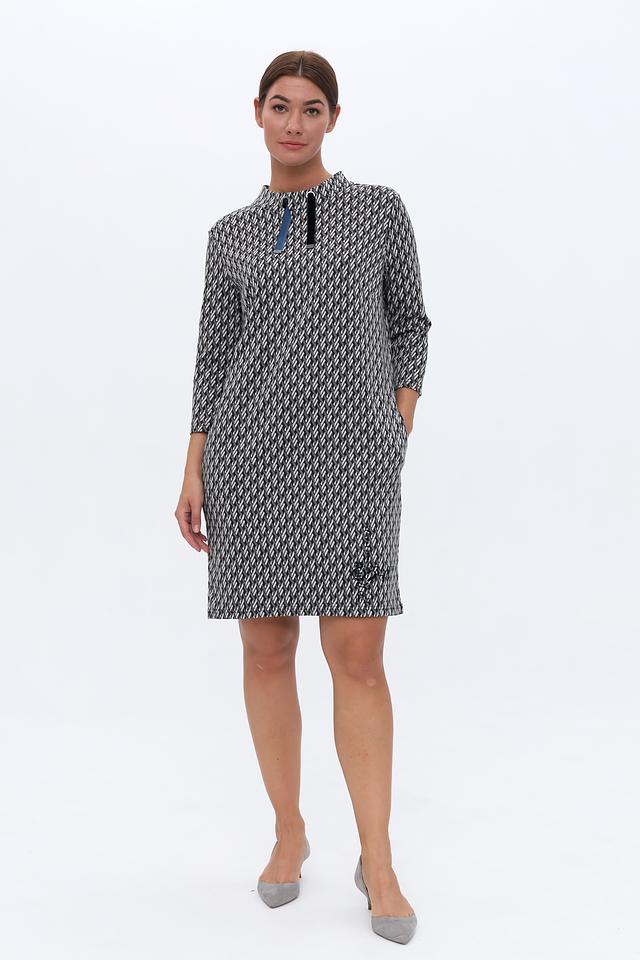 Это платье от Lebek – идеальный выбор для тех, кто ценит комфорт и стиль. Платье выполнено в чёрно-белой цветовой гамме и украшено выразительным геометрическим принтом, который придает ему современный вид.