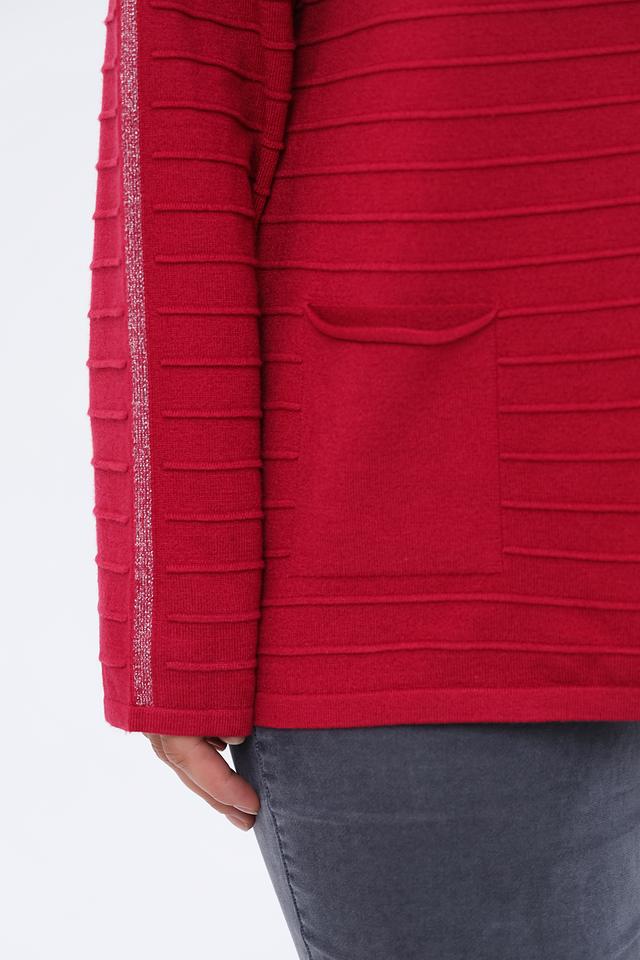 Малиновый пуловер от Lebek с капюшоном и горизонтальной текстурой. Изготовлен из сочетания акрила, хлопка и полиамида, обеспечивая комфорт и удобство в носке. Подходит для создания стильных повседневных образов. Состав: полиакрил 45%, хлопок 45%, полиамид 10%