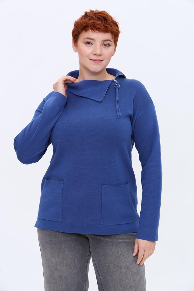 Пуловер Lebek синий с молнией