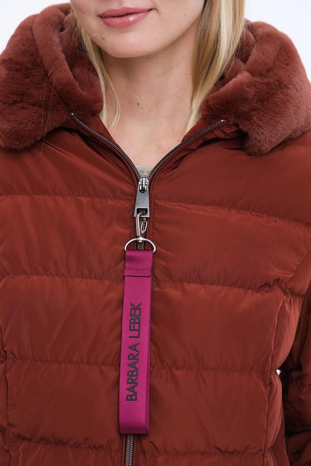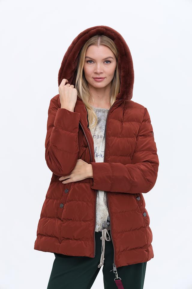 Женская куртка Lebek терракотового цвета – это стильная и теплая модель с капюшоном, отделанным искусственным мехом. Стеганая текстура и удобный крой делают эту куртку идеальным выбором для прохладной погоды. Состав: полиэстер 100%
