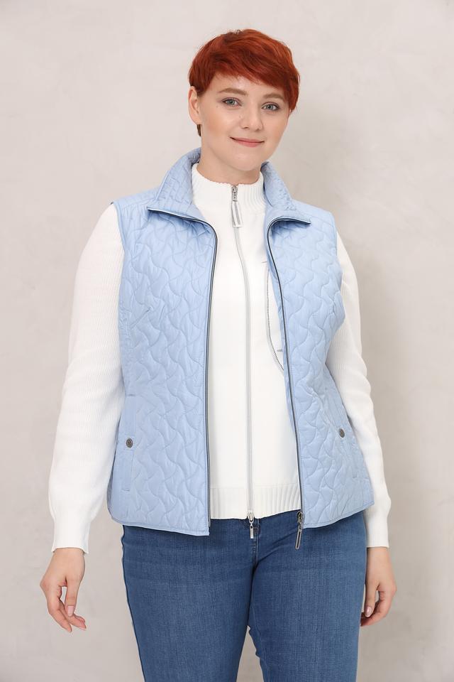 Женский жилет Lebek голубого цвета выполнен в стеганом стиле с застежкой на молнию. Модель имеет воротник-стойку и боковые карманы, что делает ее практичной и удобной для повседневной носки. Состав: полиэстер 100%