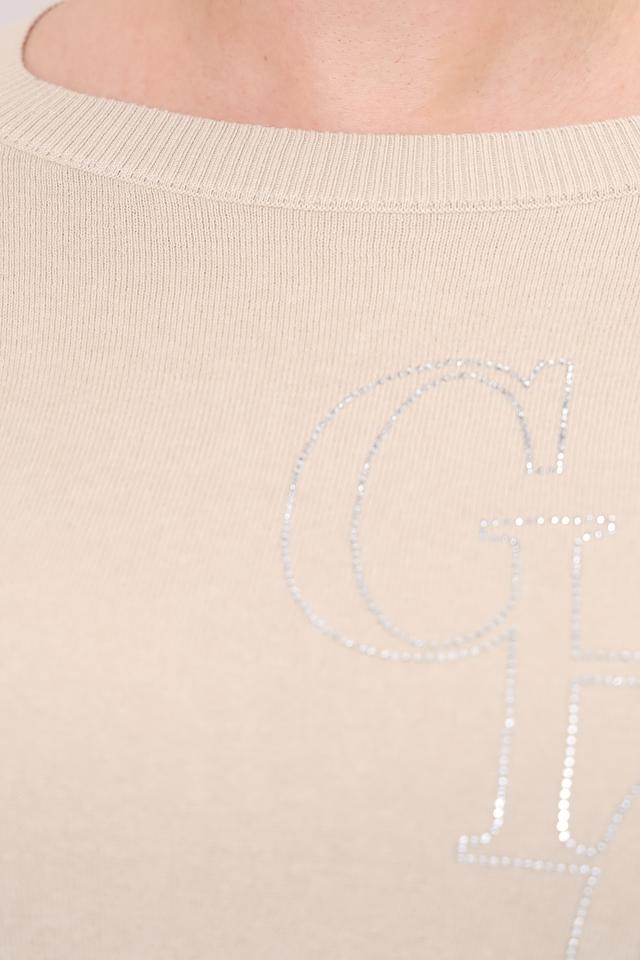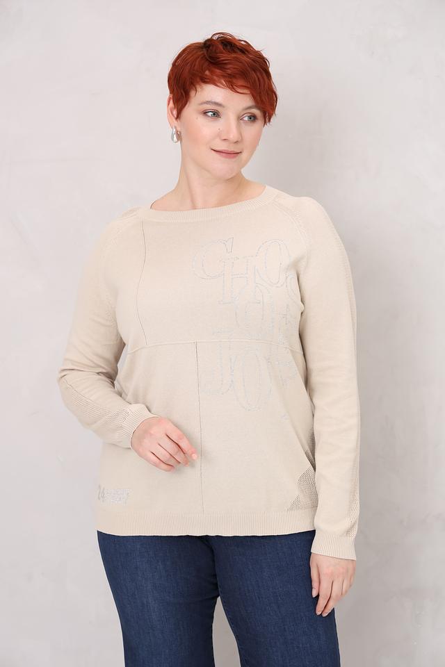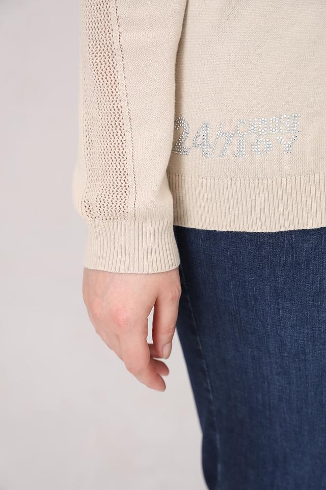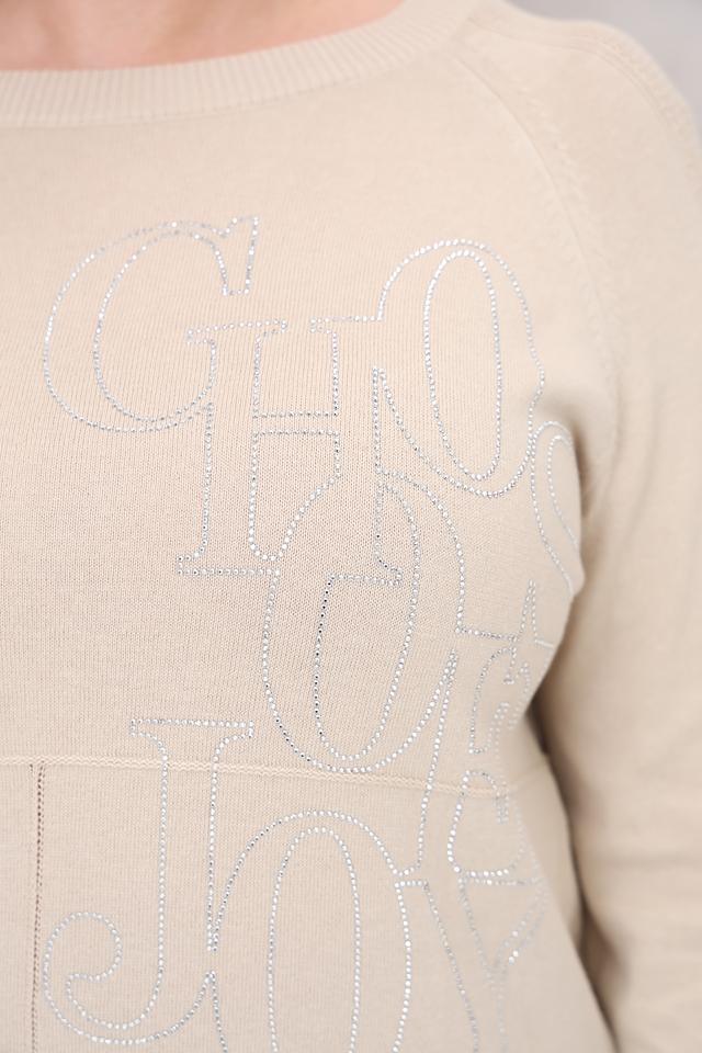 Основной акцент пуловера – это декоративное оформление в виде логотипа, выполненного с использованием блестящих элементов. Это придает изделию изысканность и индивидуальность.