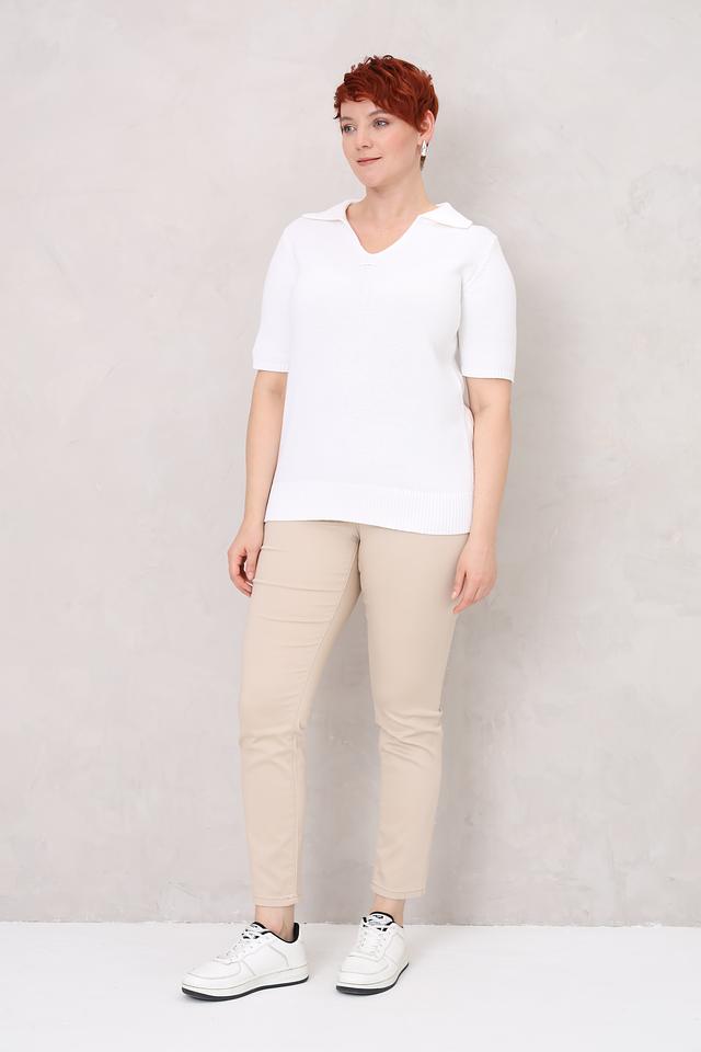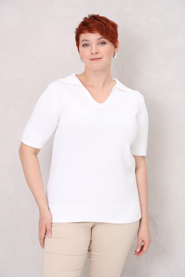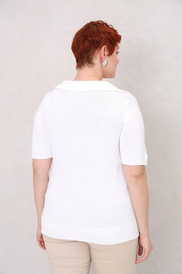 Этот стильный пуловер от Lebek выполнен в белом цвете и имеет короткие рукава, что делает его идеальным выбором для тёплой погоды. Воротник-поло добавляет образу элегантности и изысканности.