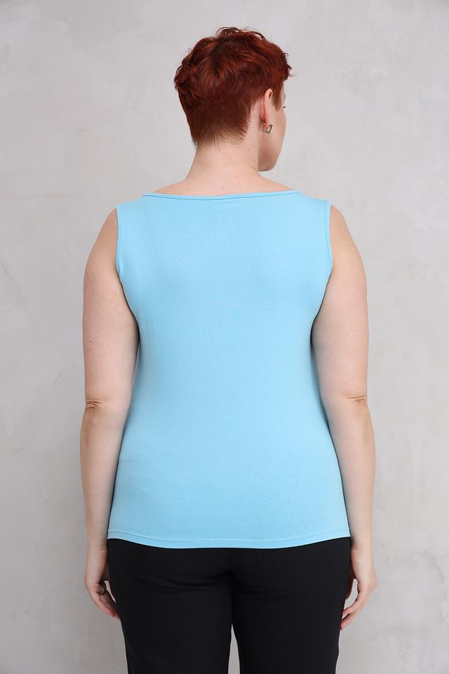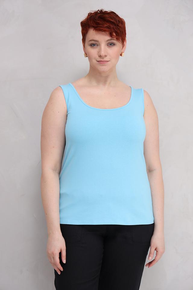 Топ Lebek — это базовая модель голубого цвета с круглым вырезом и тонкими бретелями. Идеально подходит для создания повседневных образов и многослойных стилей. Изготовлен из мягкого и приятного к телу сочетания хлопка, модала и эластана. Состав: хлопок 47%, модал 47%, эластан 6%
