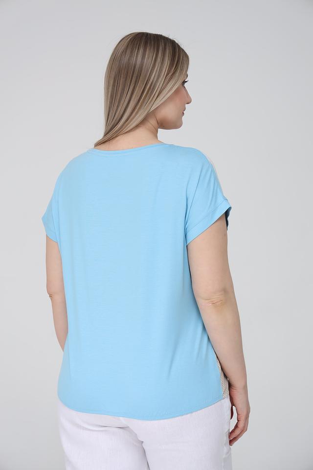 Круглый вырез горловины и короткие рукава делают футболку универсальной и подходящей для любого типа фигуры. Футболка идеально сочетается с джинсами, брюками или юбками, создавая стильный и непринужденный образ. Состав: вискоза 92%, эластан 8%.