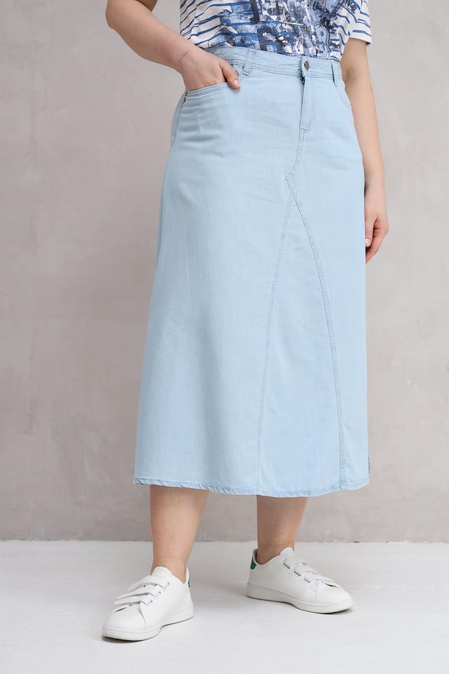 Голубая юбка Barbara Lebek из денима средней длины с небольшим разрезом. Модель выполнена в классическом стиле и станет отличным дополнением к вашему гардеробу. Состав: хлопок 46%, полиакрил 46%, полиамид 8%