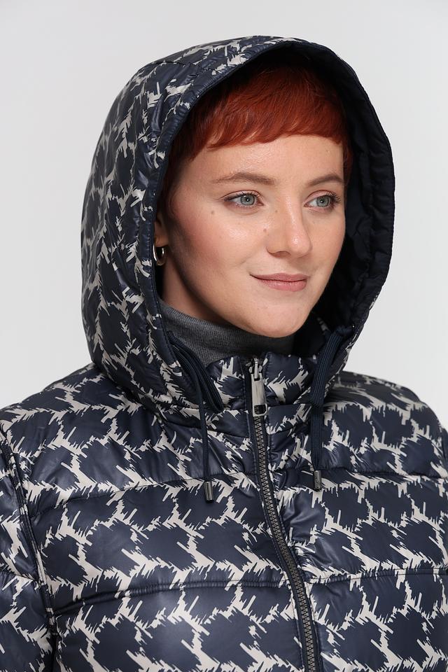 Куртка имеет стеганую фактуру, которая придает ей современный и стильный вид. Капюшон с принтом добавляет оригинальности образу. Застежка-молния обеспечивает удобство и надежность.