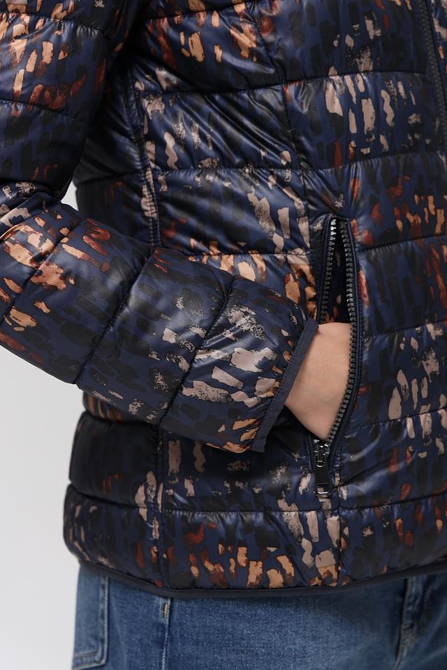 Куртка имеет оригинальный принт, который придаёт ей индивидуальность и стиль. Капюшон обеспечивает дополнительную защиту от непогоды, а застежка-молния позволяет легко регулировать температуру.