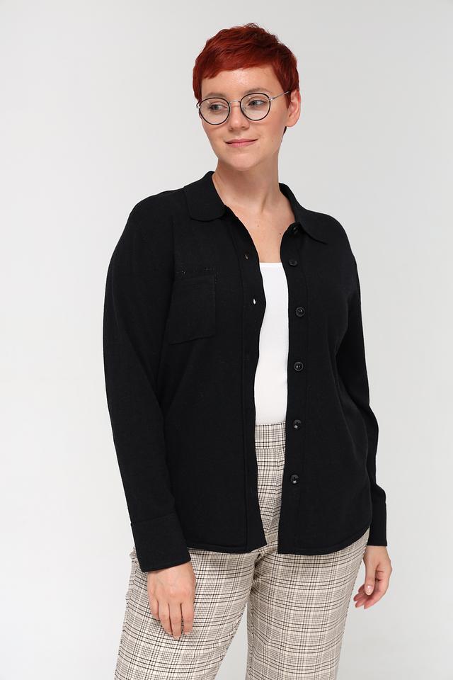 Рубашка имеет прямой крой, длинные рукава и воротник. На груди расположен накладной карман, добавляющий образу функциональность и стиль. Застёжка осуществляется на пуговицы по всей длине.