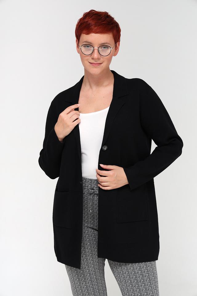 Модель имеет отложной воротник, застёжку на две пуговицы и два функциональных кармана. Прямой крой жакета позволяет легко сочетать его с различными предметами одежды, создавая стильные и элегантные комплекты.