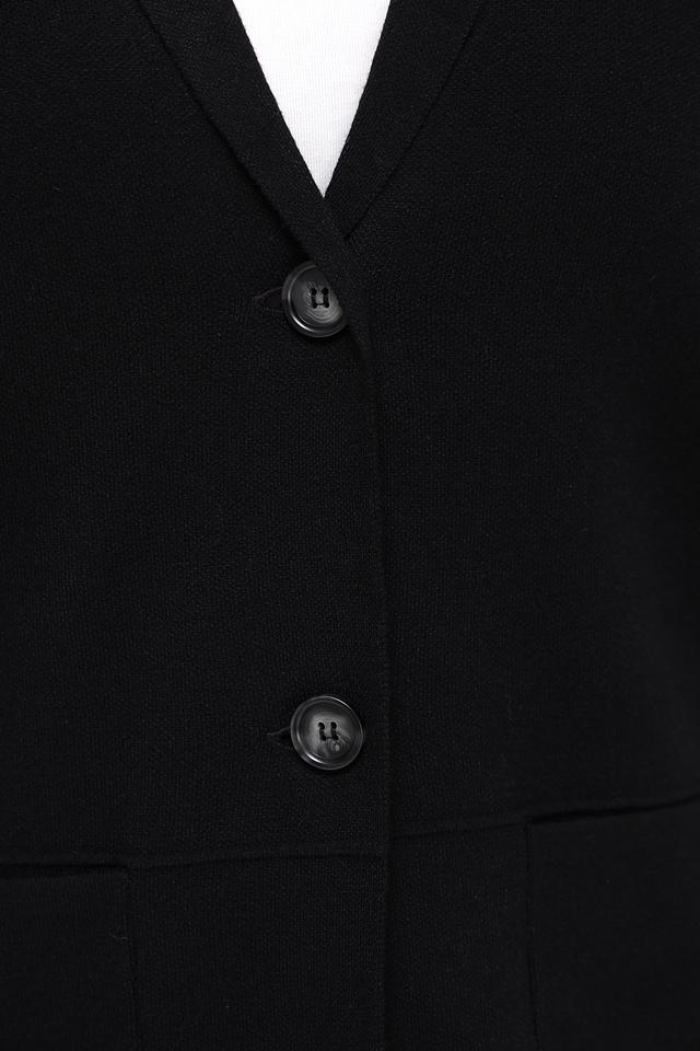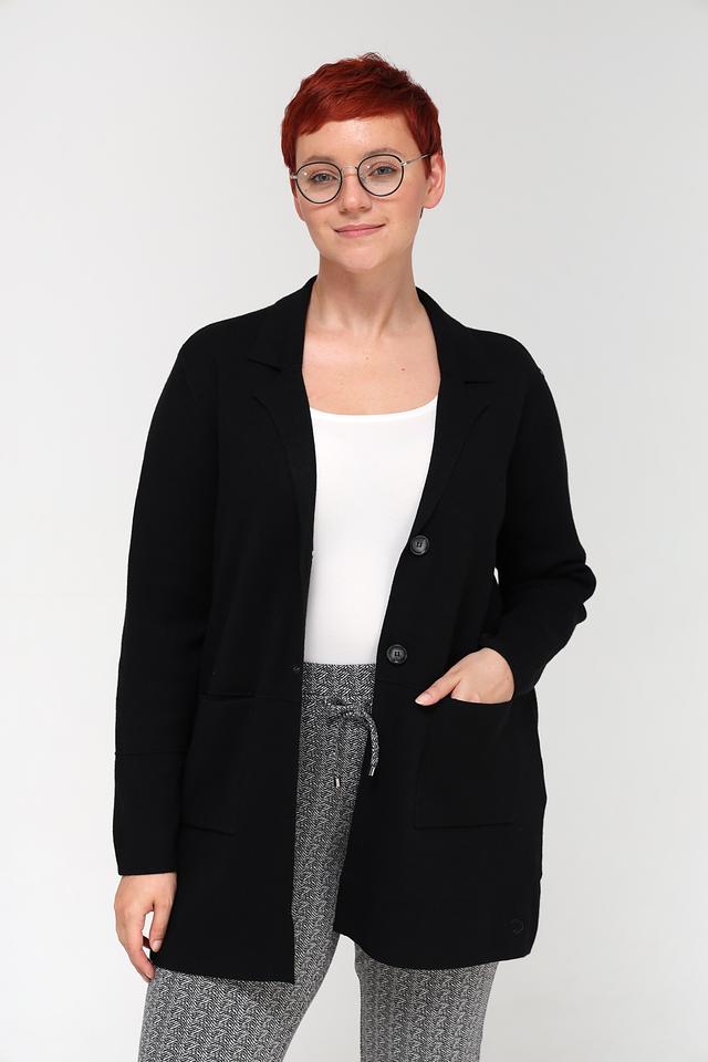 Жакет выполнен из приятной на ощупь ткани, состоящей из вискозы, полиэстера и полиамида. Сочетание этих материалов обеспечивает комфорт в носке, хорошую посадку и устойчивость к сминанию.