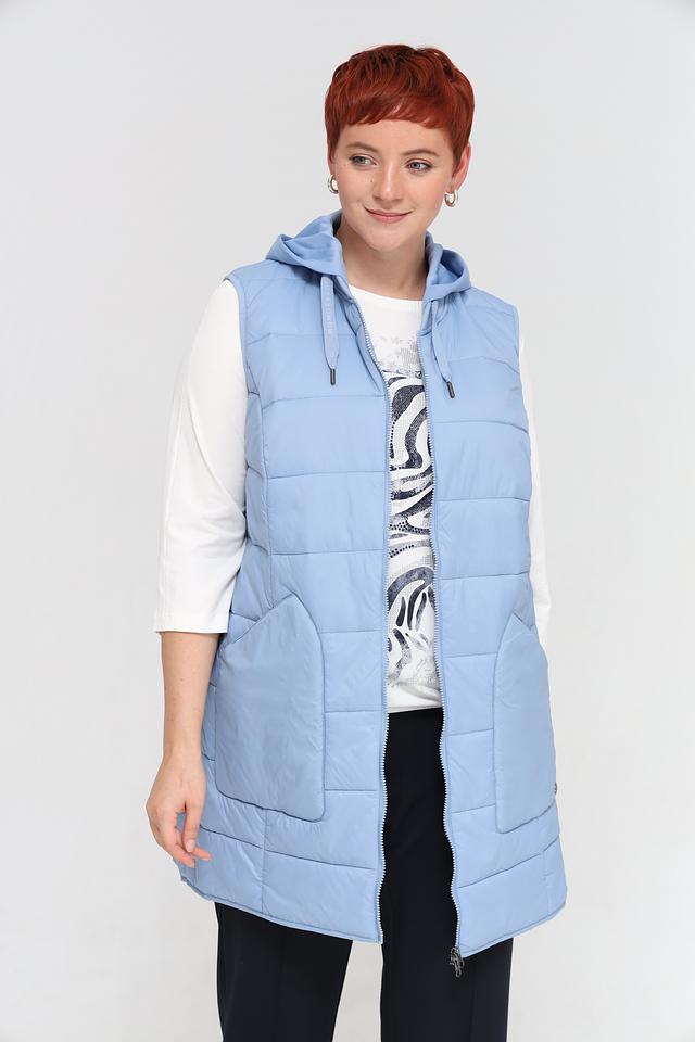 Голубой стеганый жилет от Lebek – это стильное и практичное решение для прохладной погоды. Удлиненный крой и капюшон обеспечивают дополнительный комфорт и защиту от ветра, а удобные карманы добавляют функциональности. Состав: полиамид 100%