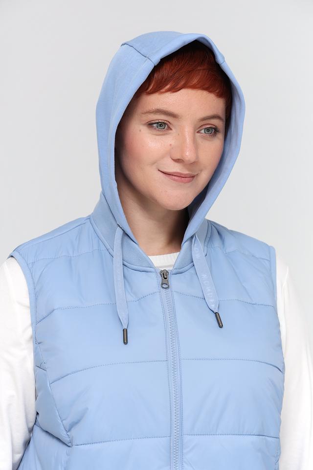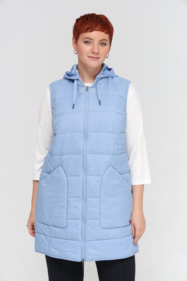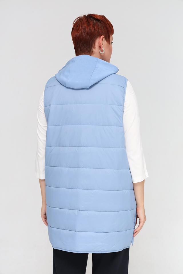 Жилет имеет удлиненный крой, который обеспечивает дополнительное тепло и защиту от холода. Стеганая текстура придает ему современный и стильный вид. Капюшон добавляет практичности, защищая от ветра и небольшого дождя.