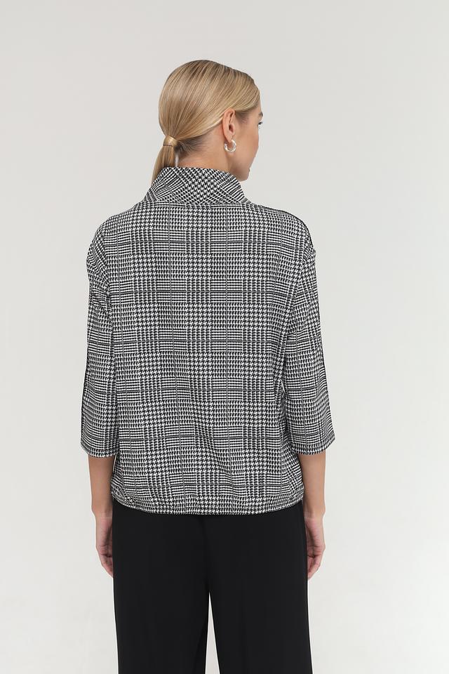 Этот стильный пуловер от Lebek станет отличным дополнением к вашему гардеробу. Пуловер выполнен в классическую чёрно-белую клетку, что делает его универсальным и легко сочетаемым с другими вещами.