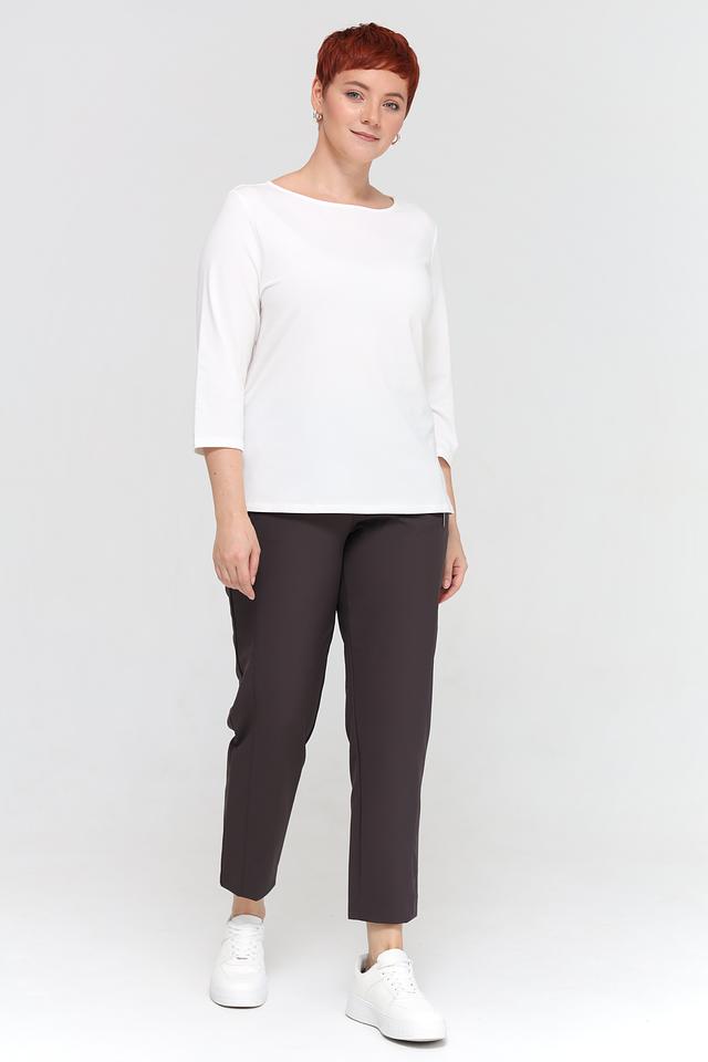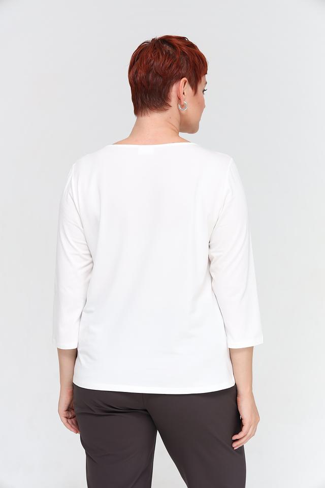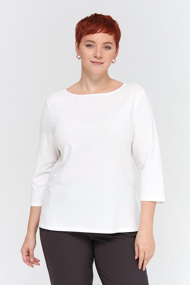 Особенностью данной футболки является ее рукав длиной 3/4, который придает ей элегантность и женственность. Вырез горловины – лодочка, что подчеркивает линию плеч и шеи.