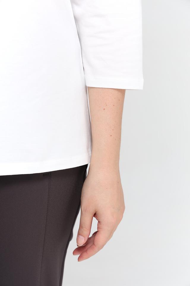 Белая футболка Barbara Lebek с рукавом 3/4 – это стильная и комфортная базовая вещь. Изготовлена из мягкого и приятного к телу сочетания хлопка и модала, обеспечивающего удобство в носке. Состав: хлопок 47%, модал 47%, эластан 6%