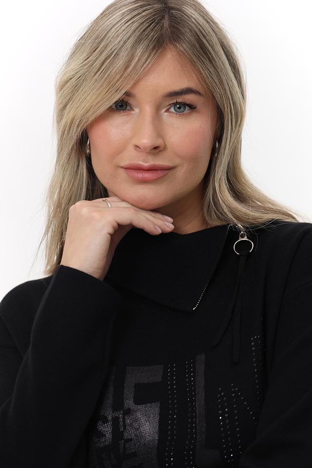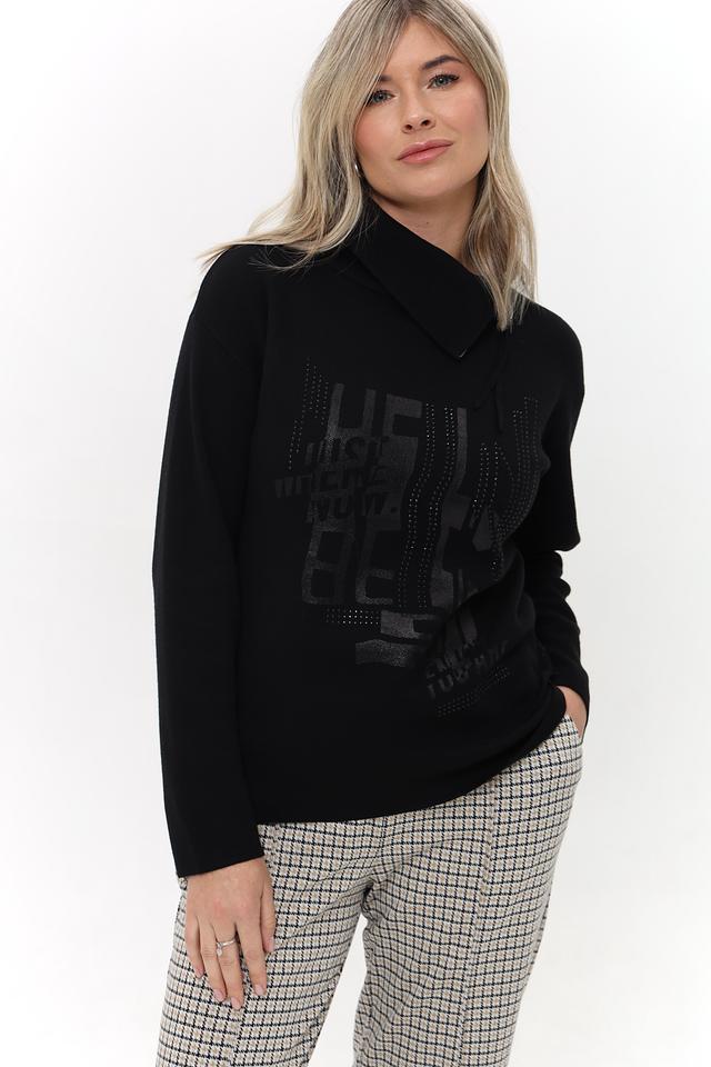 Чёрный пуловер от Lebek с оригинальным декором из страз. Модель выполнена из мягкого трикотажа с добавлением акрила, что обеспечивает комфорт и удобство в носке. Идеально дополнит повседневный образ. Состав: хлопок 50%, полиакрил 50%