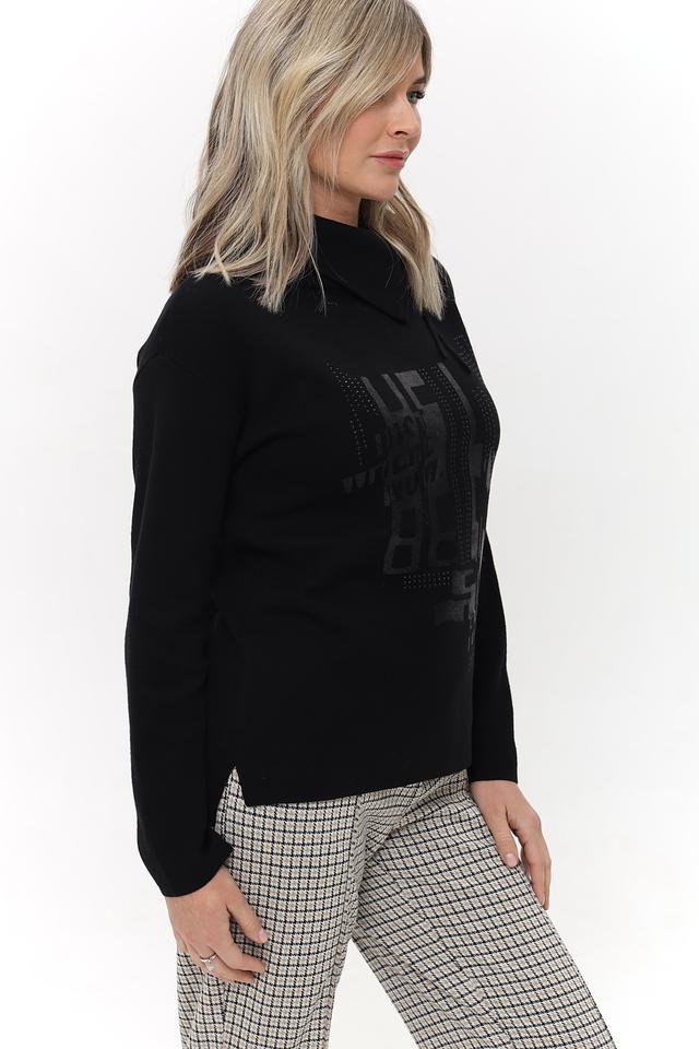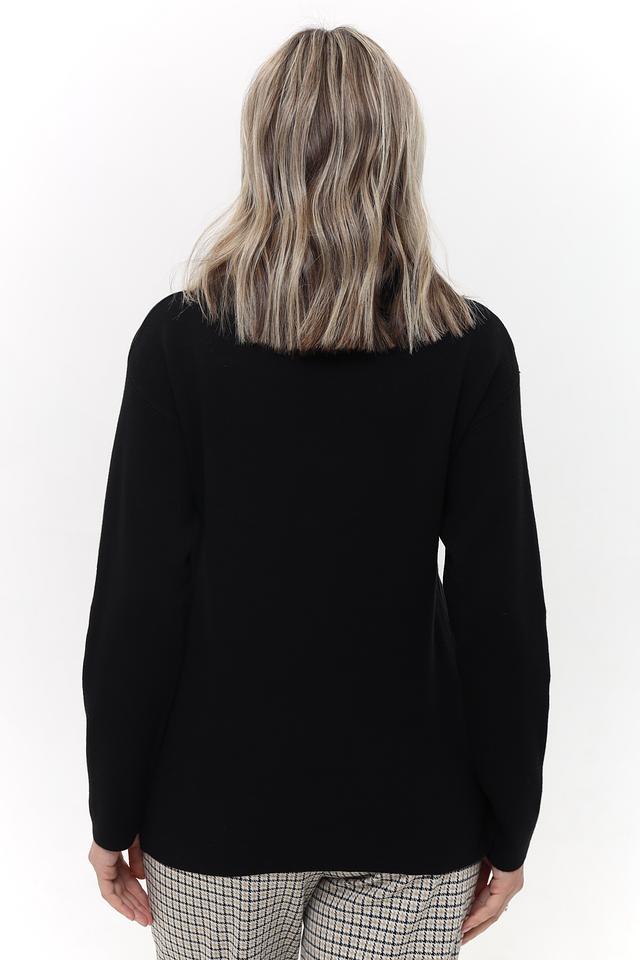 Модель с высоким воротом-стойкой, который обеспечивает дополнительный комфорт в прохладную погоду. Пуловер идеально подходит для создания как повседневных, так и более нарядных образов. Он прекрасно сочетается с брюками, юбками и джинсами.
