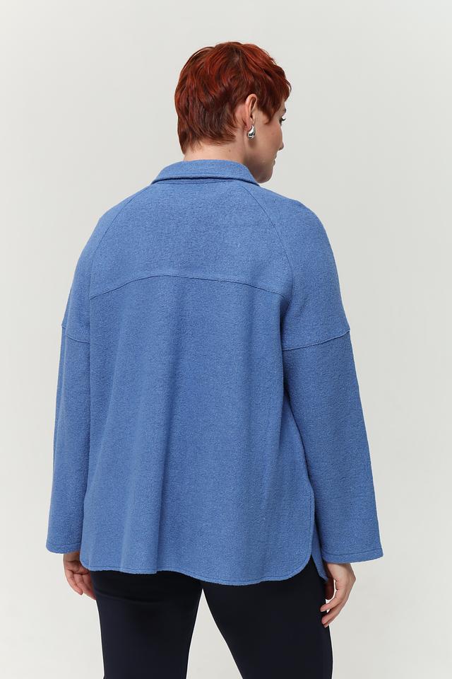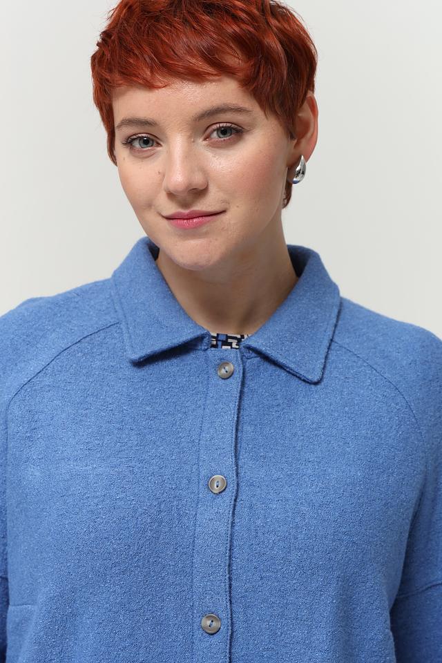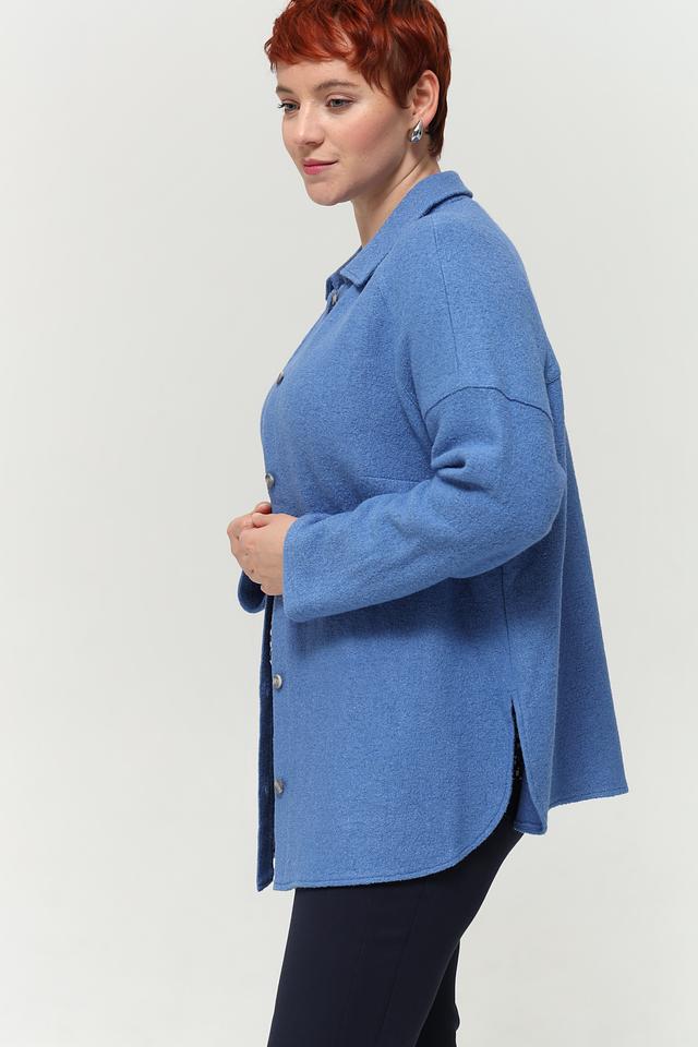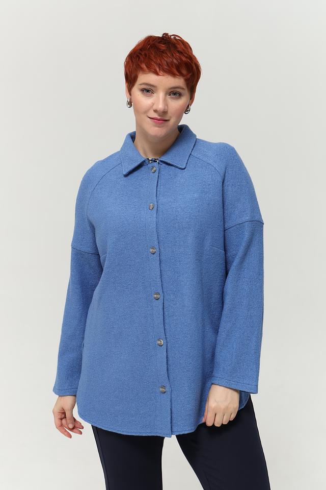 Голубая рубашка оверсайз от Lebek выполнена из мягкой ткани с добавлением шерсти. Модель с отложным воротником и застёжкой на пуговицы станет отличным дополнением к вашему гардеробу. Состав: вискоза 60%, шерсть 40%