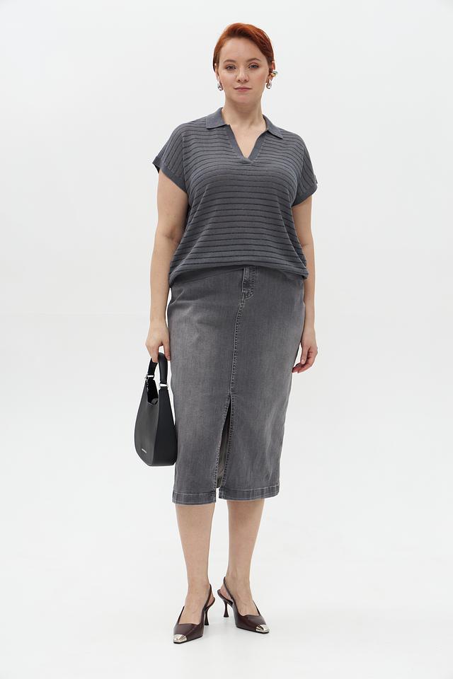 Юбка имеет классический крой и длину миди, что делает ее подходящей для создания как повседневных, так и более элегантных образов. Модель дополнена шлицей сзади, что придает ей динамичности и свободы движений.