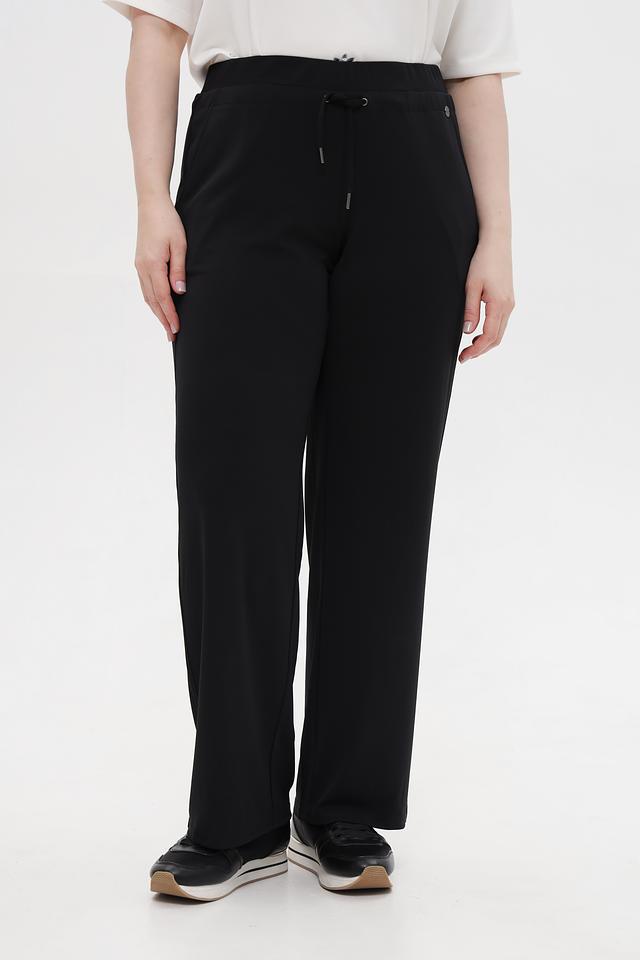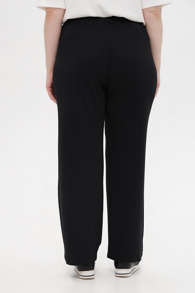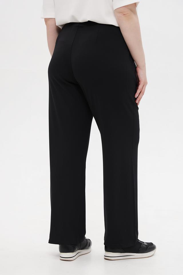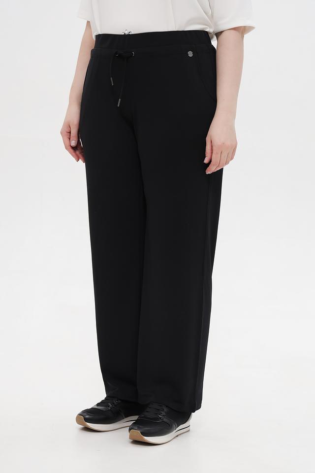 Брюки изготовлены из высококачественного полиэстера с добавлением эластана (95% полиэстер, 5% эластан), что обеспечивает комфорт в носке, хорошую посадку и устойчивость к сминанию. Прямой крой и широкие штанины визуально удлиняют силуэт и придают образу лёгкость.