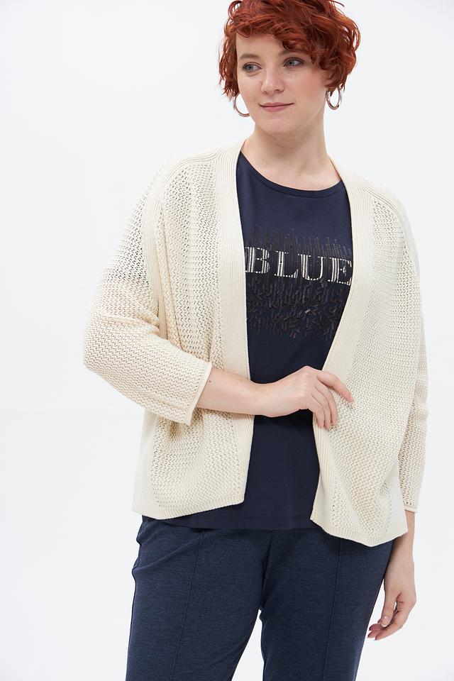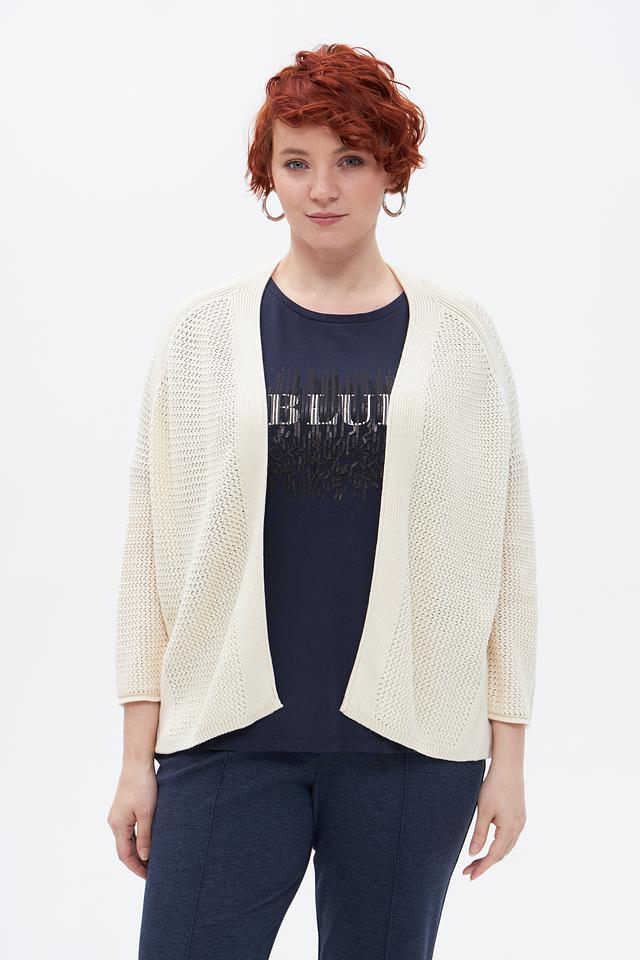 Благодаря открытому силуэту и рукавам 3/4, жакет прекрасно сочетается с различными предметами гардероба – от повседневных футболок и джинсов до более нарядных платьев и юбок. Это универсальная вещь, которая будет уместна в любой ситуации.