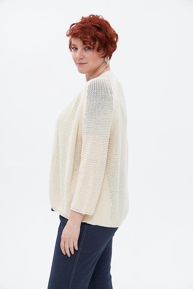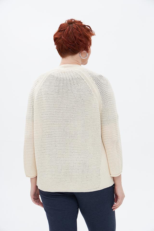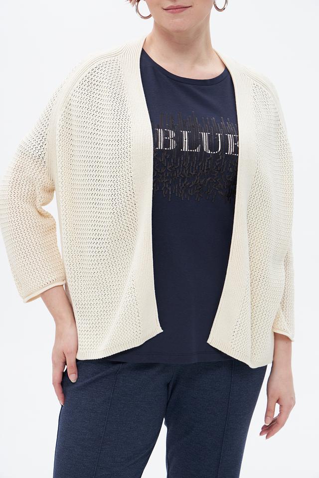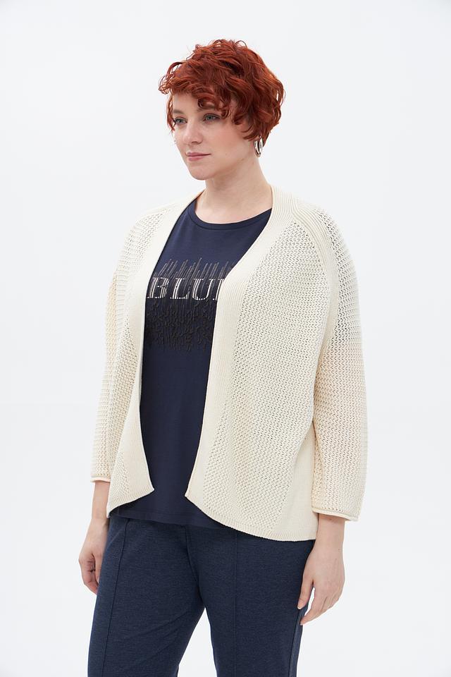 Жакет изготовлен из сочетания хлопка и полиакрила, что делает его приятным на ощупь и практичным в носке. Текстурная вязка добавляет изделию оригинальности.