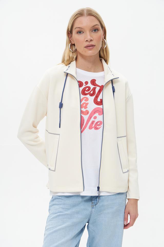 Этот стильный жакет от Lebek выполнен в приятном бежевом цвете и станет универсальным элементом вашего повседневного образа. Модель имеет удобную застежку-молнию и функциональный капюшон со шнурками для регулировки.