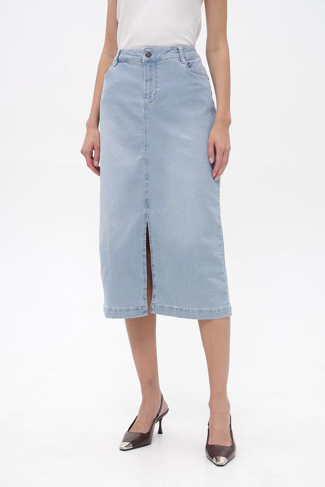 Голубая джинсовая юбка от Lebek — это стильная и универсальная модель, выполненная из хлопка с добавлением эластана. Прямой крой и длина миди обеспечивают комфорт и свободу движений. Состав: хлопок 97%, эластан 3%
