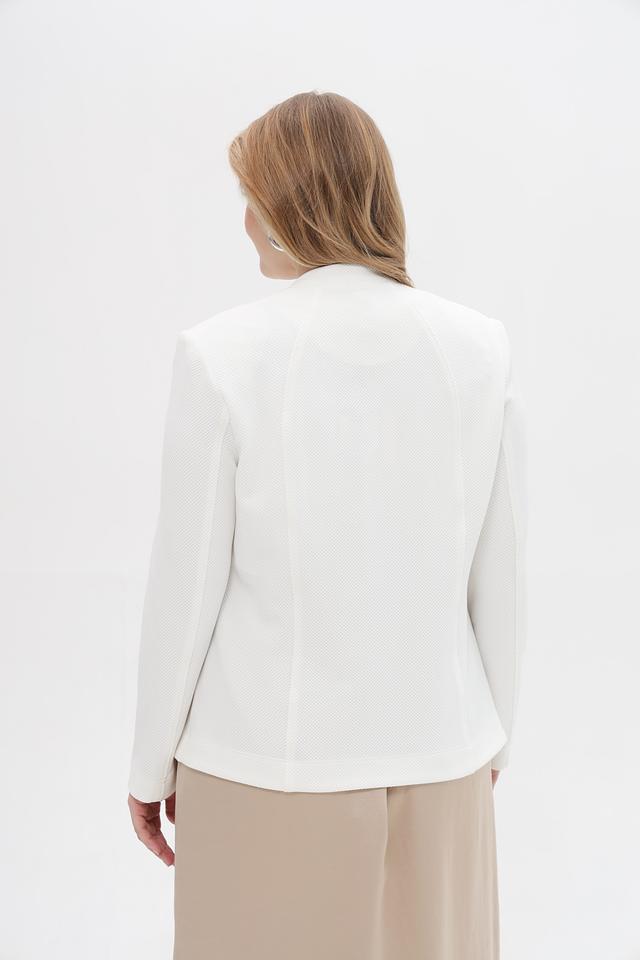 Этот жакет от Lebek станет отличным дополнением к вашему гардеробу. Выполненный в молочном цвете, он легко сочетается с различными стилями одежды, от повседневных до более формальных.