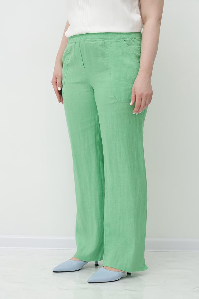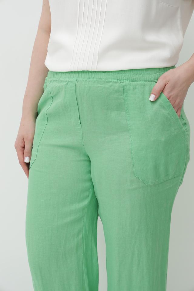 Льняные брюки Lebek мятного цвета — комфортная и стильная модель на каждый день. Изготовлены из 100% натурального льна, обеспечивающего воздухопроницаемость и приятные ощущения на коже. Состав: лен 100%