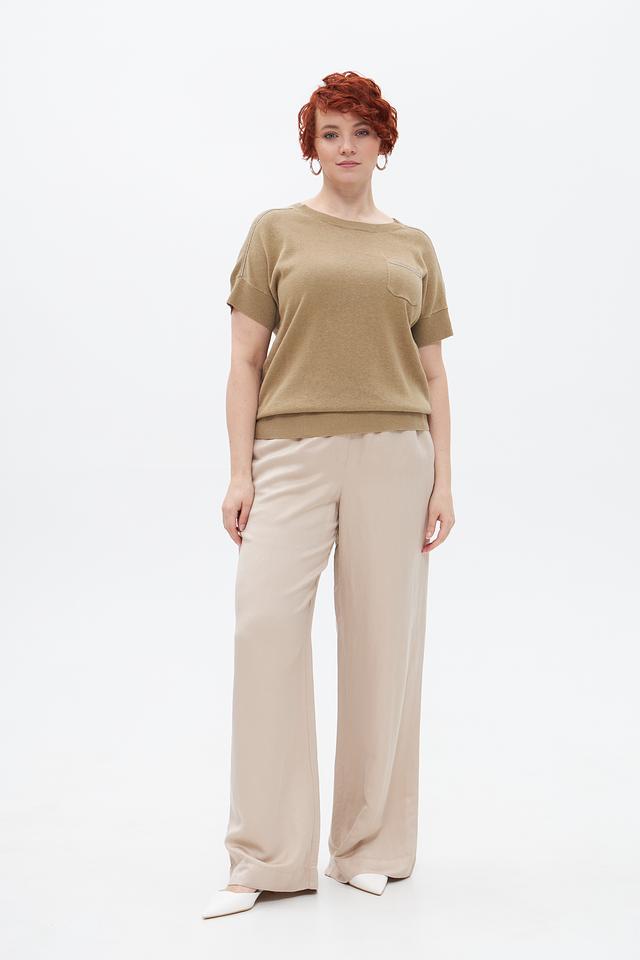 Бежевый пуловер от Lebek – это стильный и комфортный выбор на каждый день. Изготовлен из натурального хлопка с добавлением льна, обеспечивающего приятные тактильные ощущения. Короткий рукав и декор в виде кармана. Состав: хлопок 55%, лен 45%
